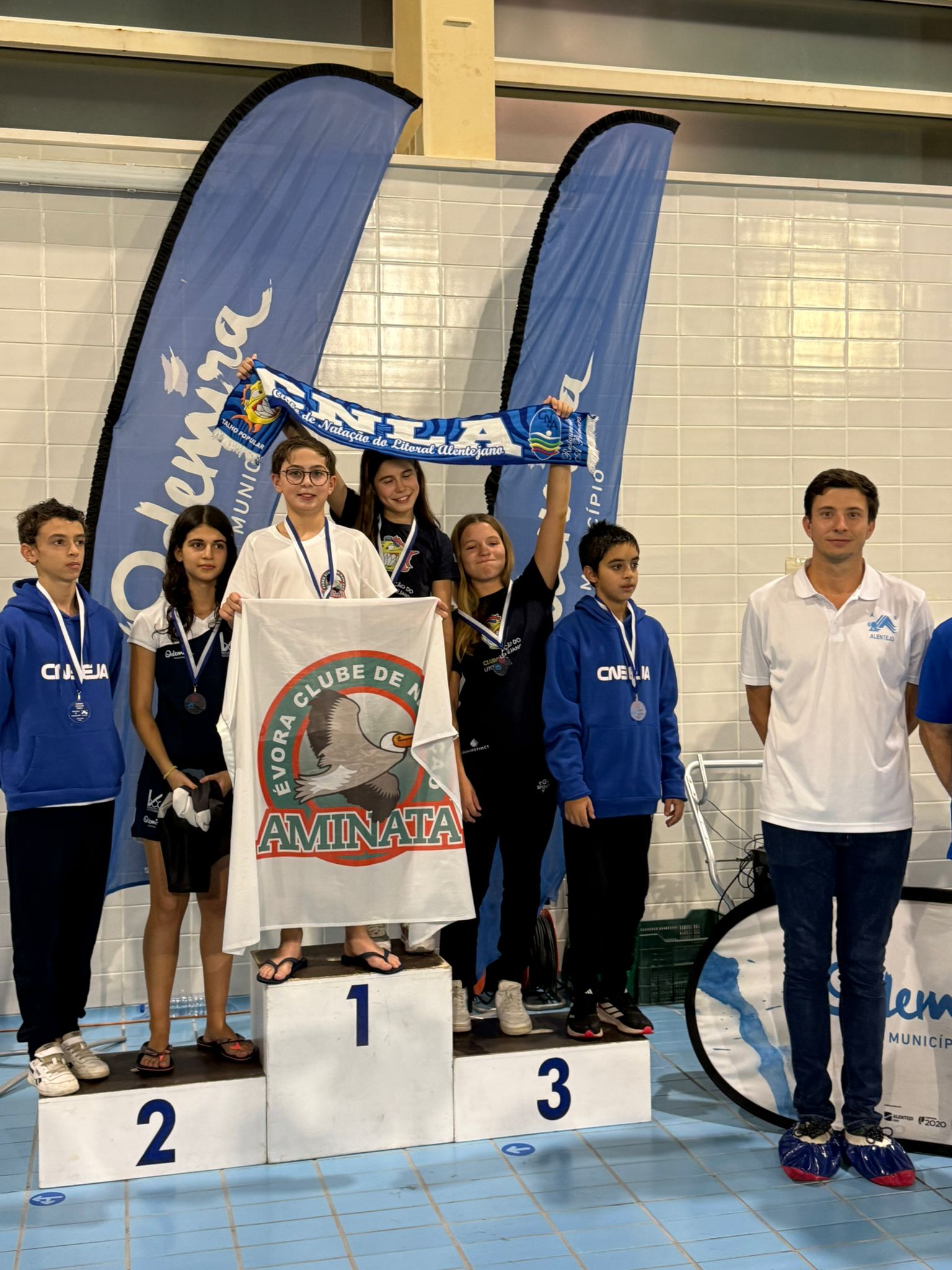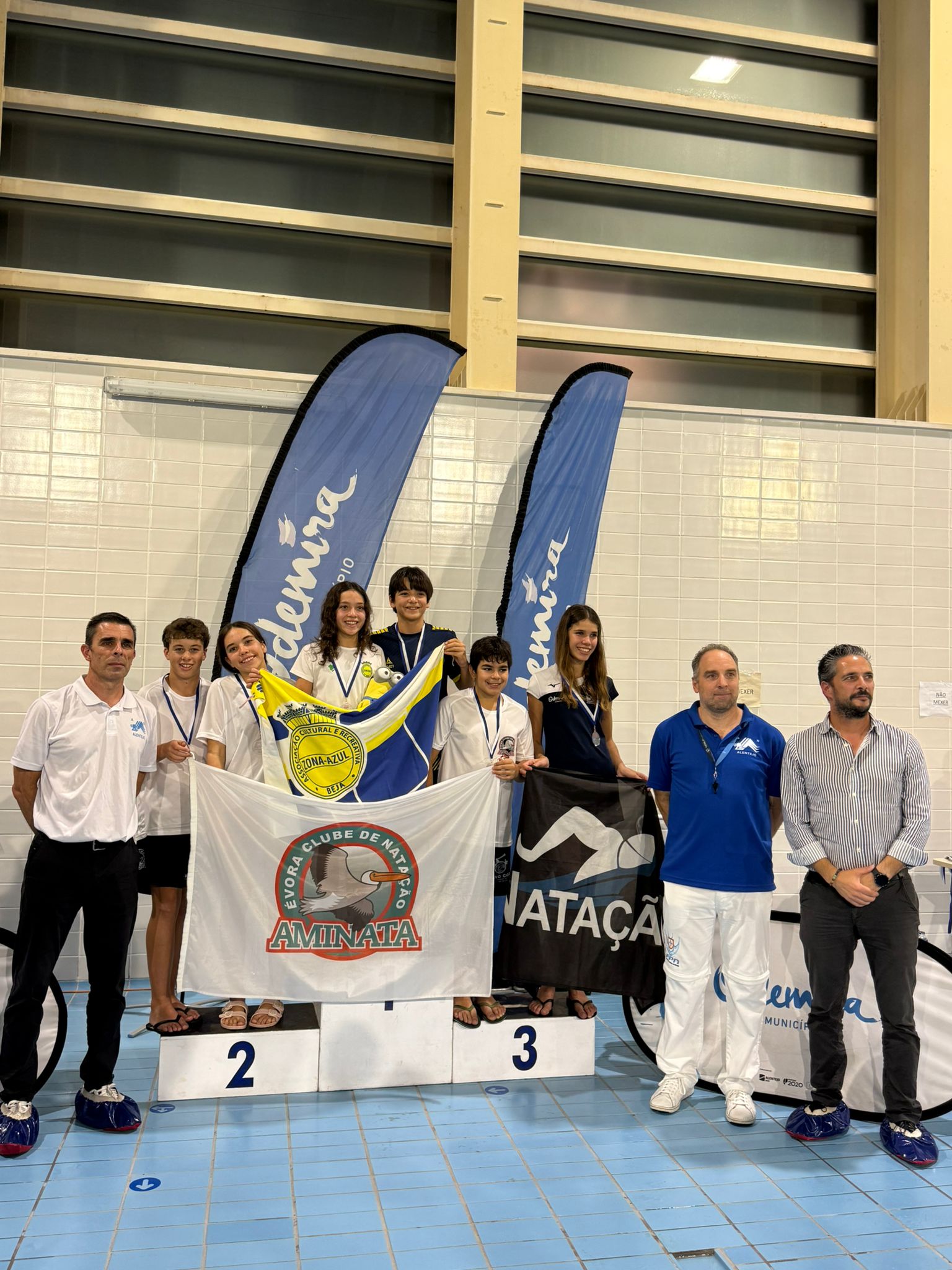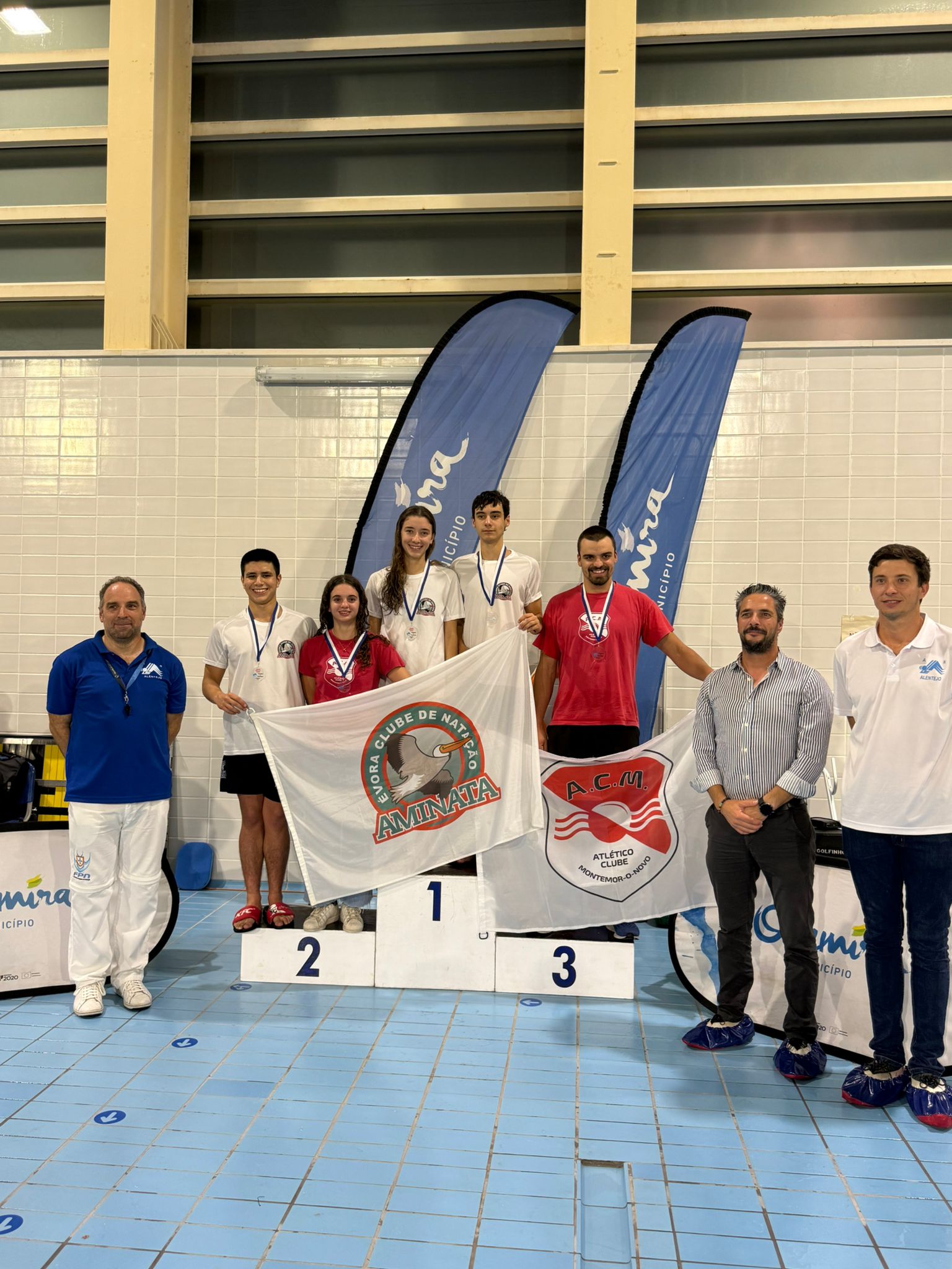 O Aminata Évora Clube de Natação esteve representado por 17 atletas e conseguiu alcançar 11 lugares no pódio nas diversas categorias.