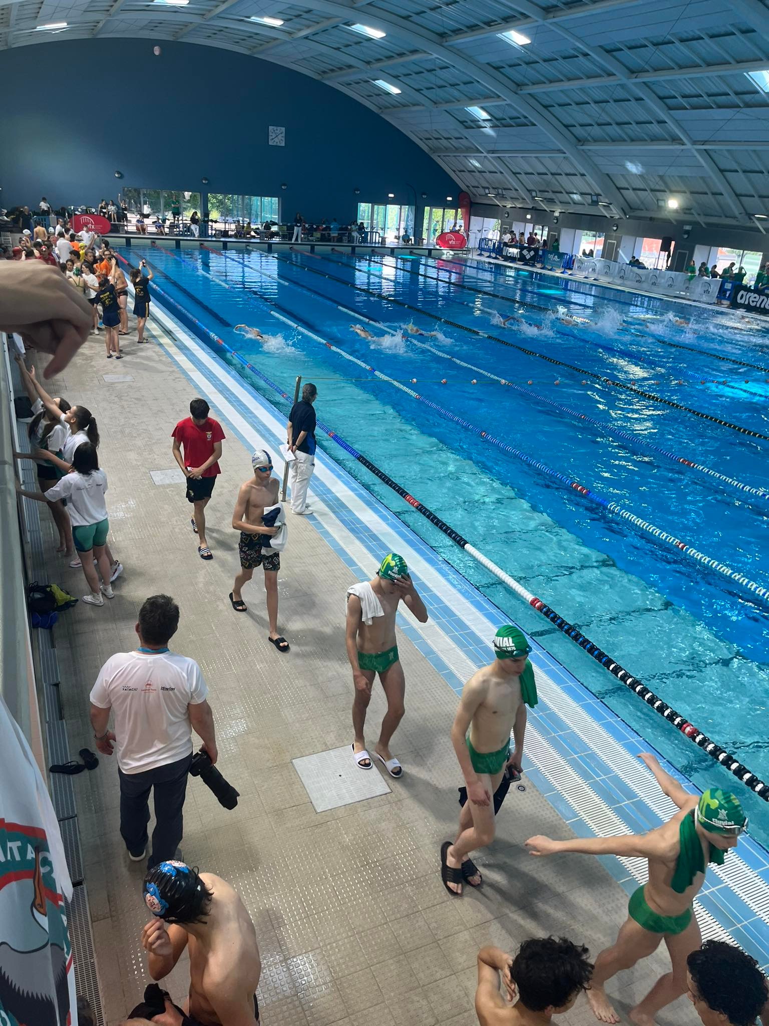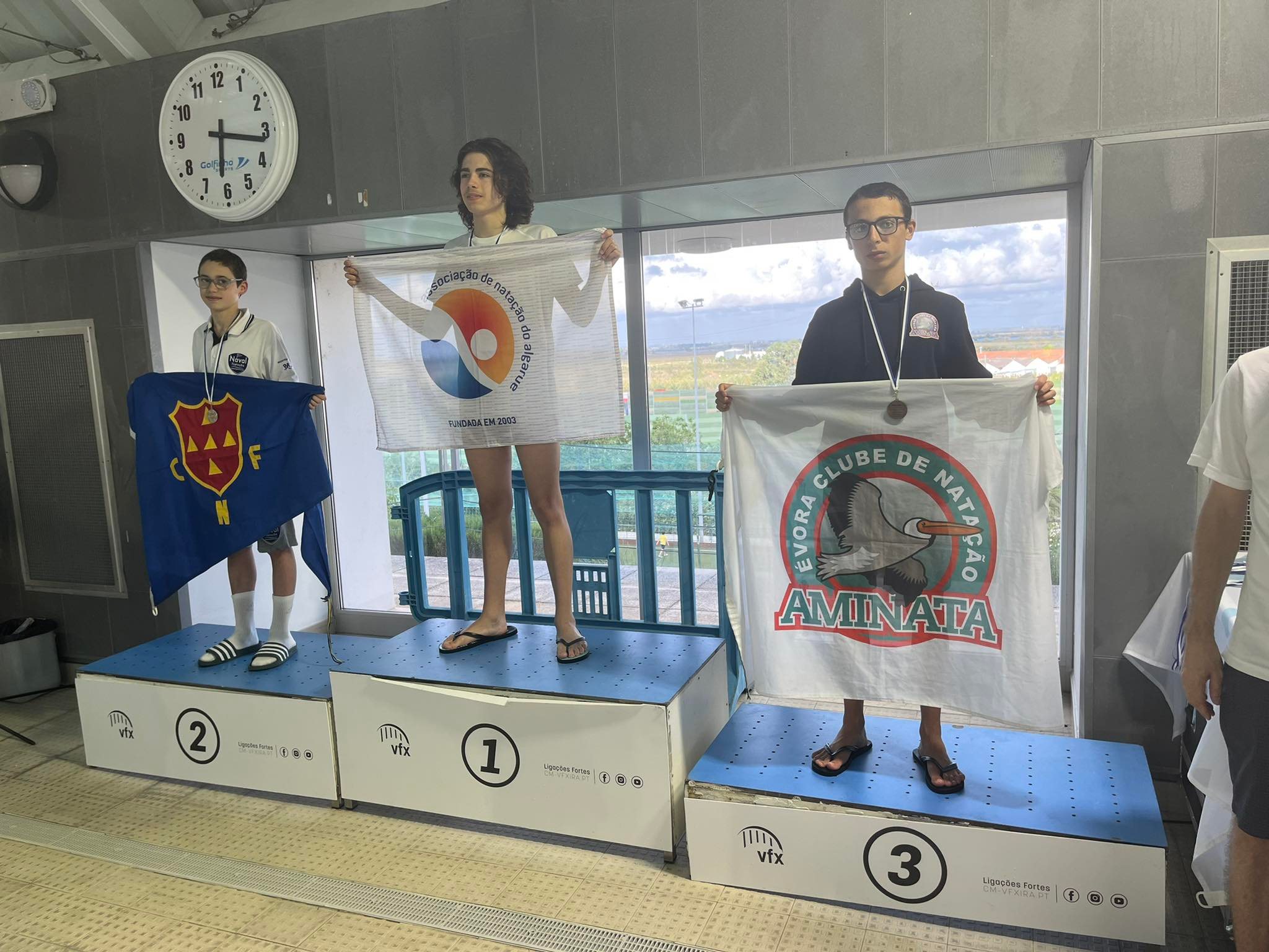 O desempenho dos nossos atletas foi muito positivo, nesta que foi a primeira prova da época em piscina olímpica (50m)! No primeiro dia de competição (sábado), em 9 provas disputadas, obtiveram 8 recordes pessoais, 6 acessos à final e 2 TACs para o Campeonato Nacional de Infantis. No segundo dia de prova, o desempenho dos nossos atletas foi ainda melhor: das 8 provas das eliminatórias conseguiram 8 novos recordes pessoais, 6 finais, 1 TAC para o Campeonato Nacional de Juvenis e 2 pódios (António Bicas 2º lugar 100m Costas e 3º lugar 100m Mariposa)!