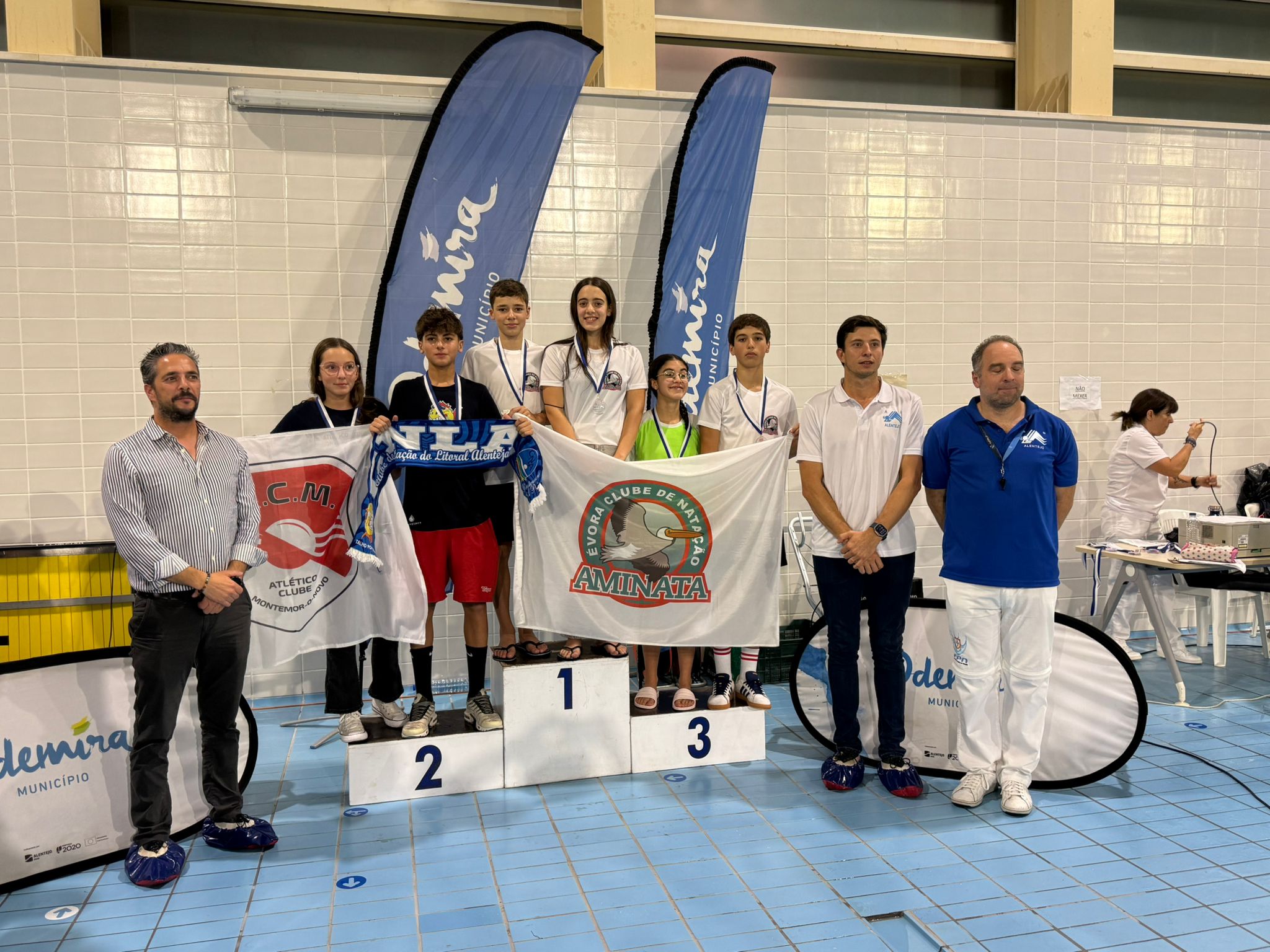 O Aminata Évora Clube de Natação esteve representado por 17 atletas e conseguiu alcançar 11 lugares no pódio nas diversas categorias.